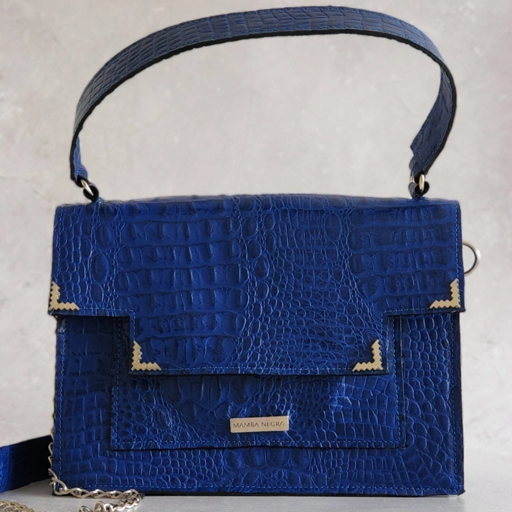 Descubra la elegancia y funcionalidad de la Cartera de Cuero Stella Maris Azul, un modelo conocido como cajón francés por su morfología distintiva.